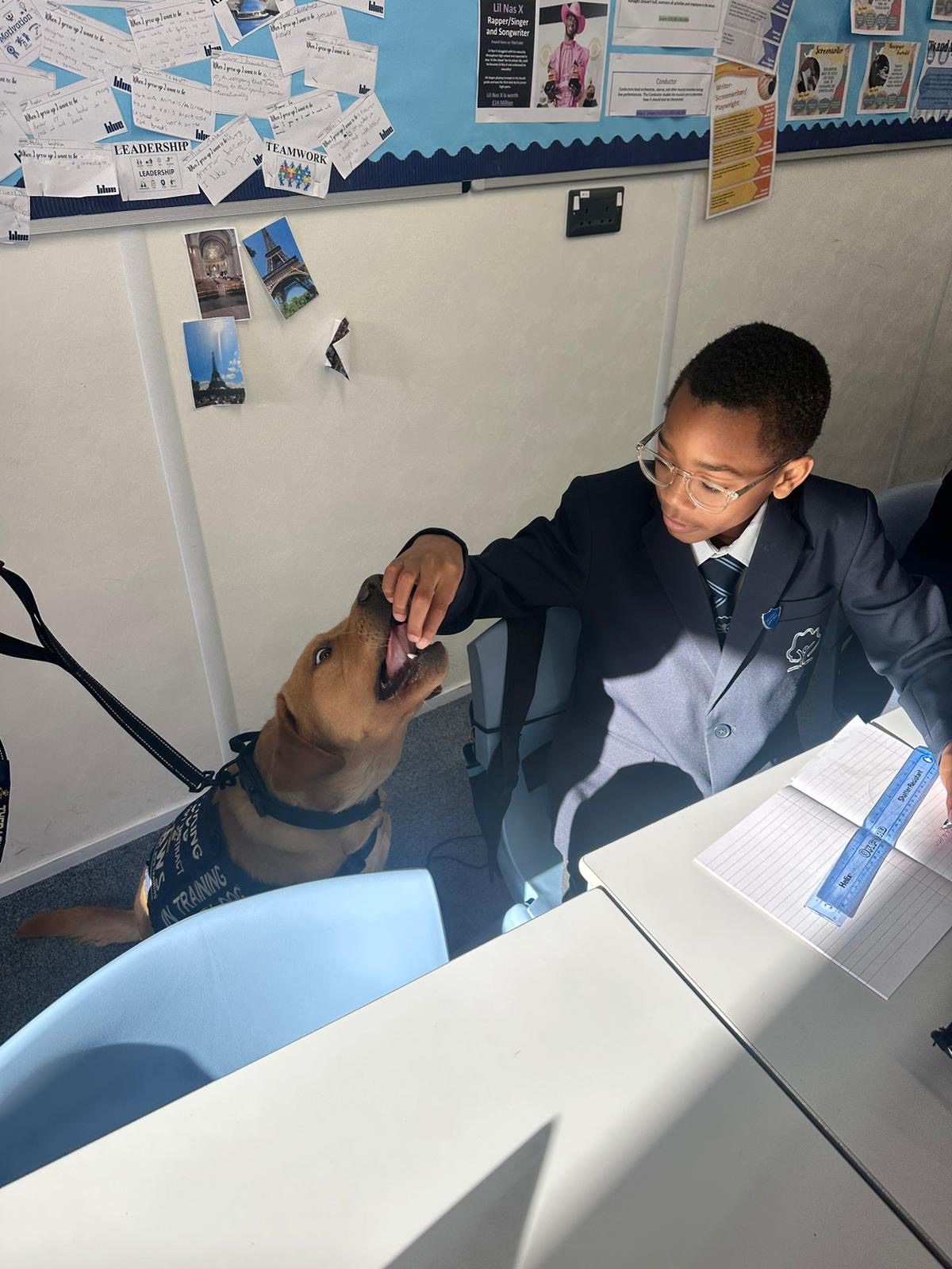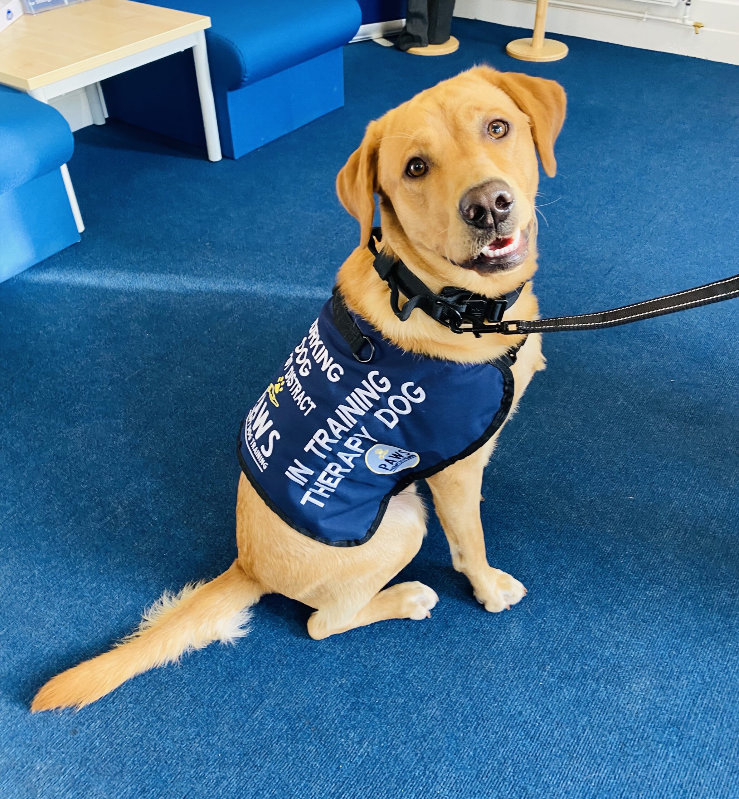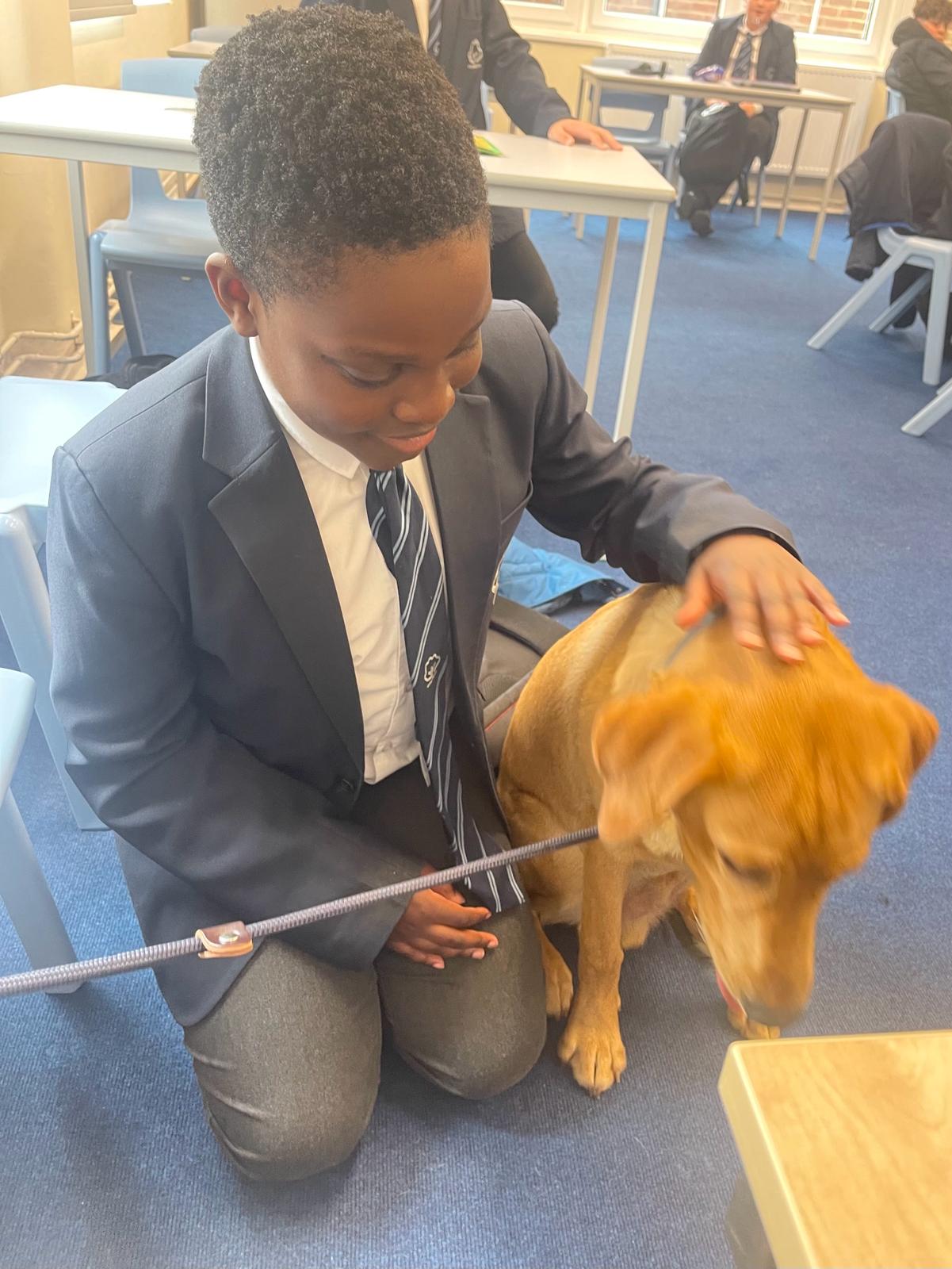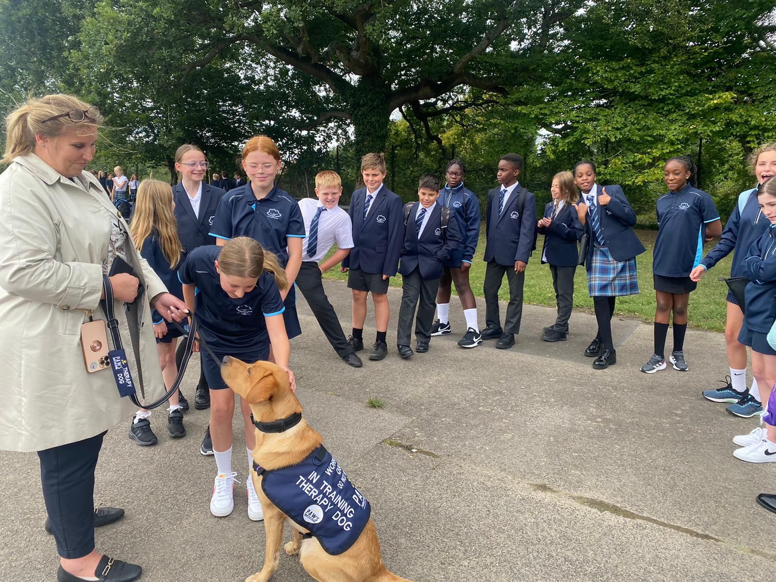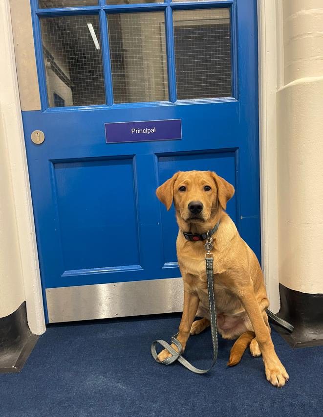 The dog was born in Devon from a litter of 11 (7girls 4 boys) from a KC registered dog owned by Mrs Schwartz’ son. GUS is also a KC registered dog. Mrs Schwartz, the School, and PAWs for therapy discussed the appropriateness of GUS for this role. He was 9 weeks old when he came to live with Mrs Schwartz and her family (October 2023) GUS is a Fox Red Labrador retriever who has a good temperament, intelligence, and a short coat to try and eliminate any fur allergies.