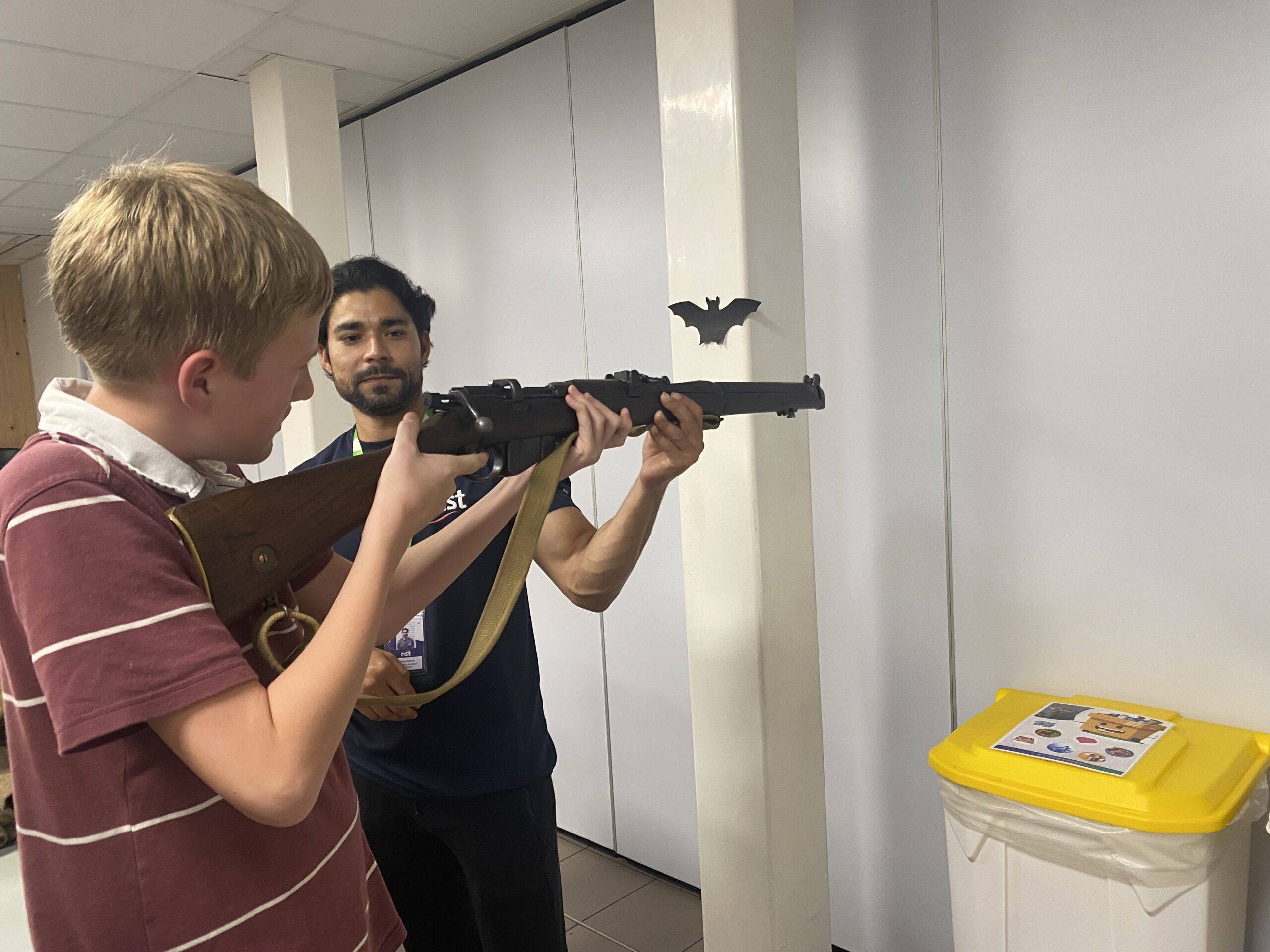 The gun was a decommissioned WW1 rifle and our students had a talk about its history and then were allowed to handle it.