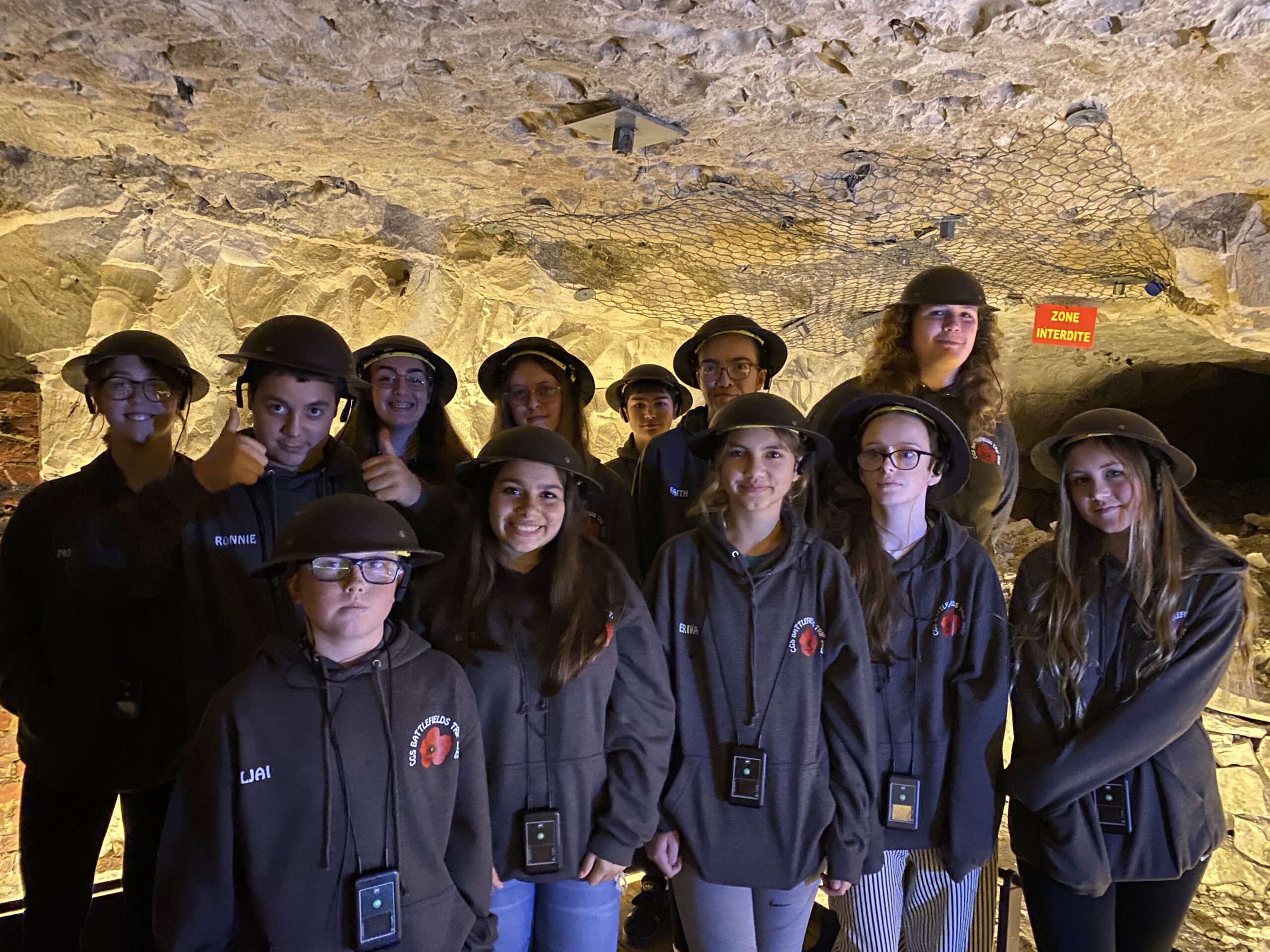 Day 2 – The Y9 Battlefields group have been deep underground this afternoon exploring the Wellington Tunnels beneath Arras. We then paid a visit to local hero Walter Tull, the first black officer of the First World War. We’re excited to head back to the Château now for some dinner and artefact handling!