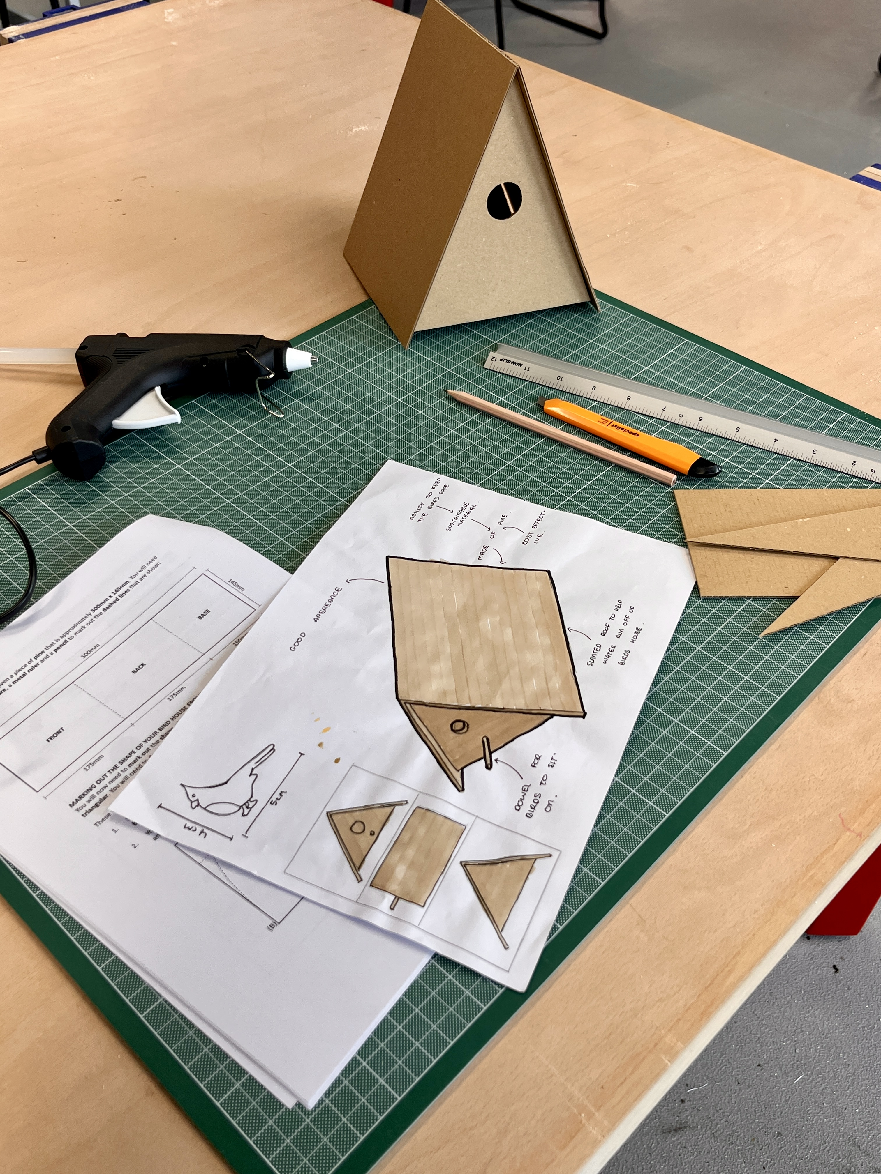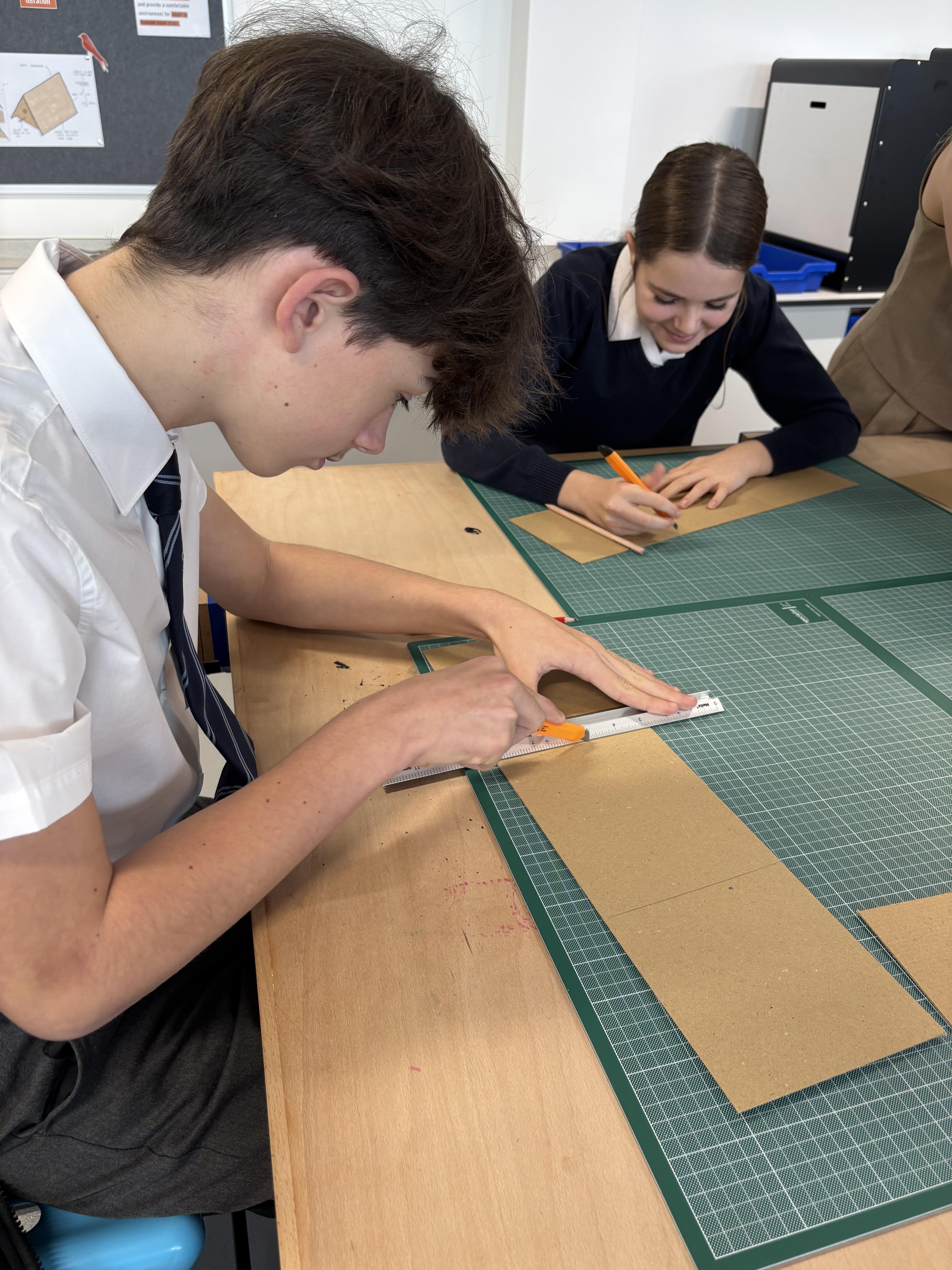 Year 9 have been developing core D&T skills through a bird house project. They have learned isometric drawing and marker rendering techniques to enhance their design sketches. This term, they will begin by building models of their designs which will serve as a foundation for the practical construction of their bird houses. These will either be taken home or installed on the school site to help enhance biodiversity.