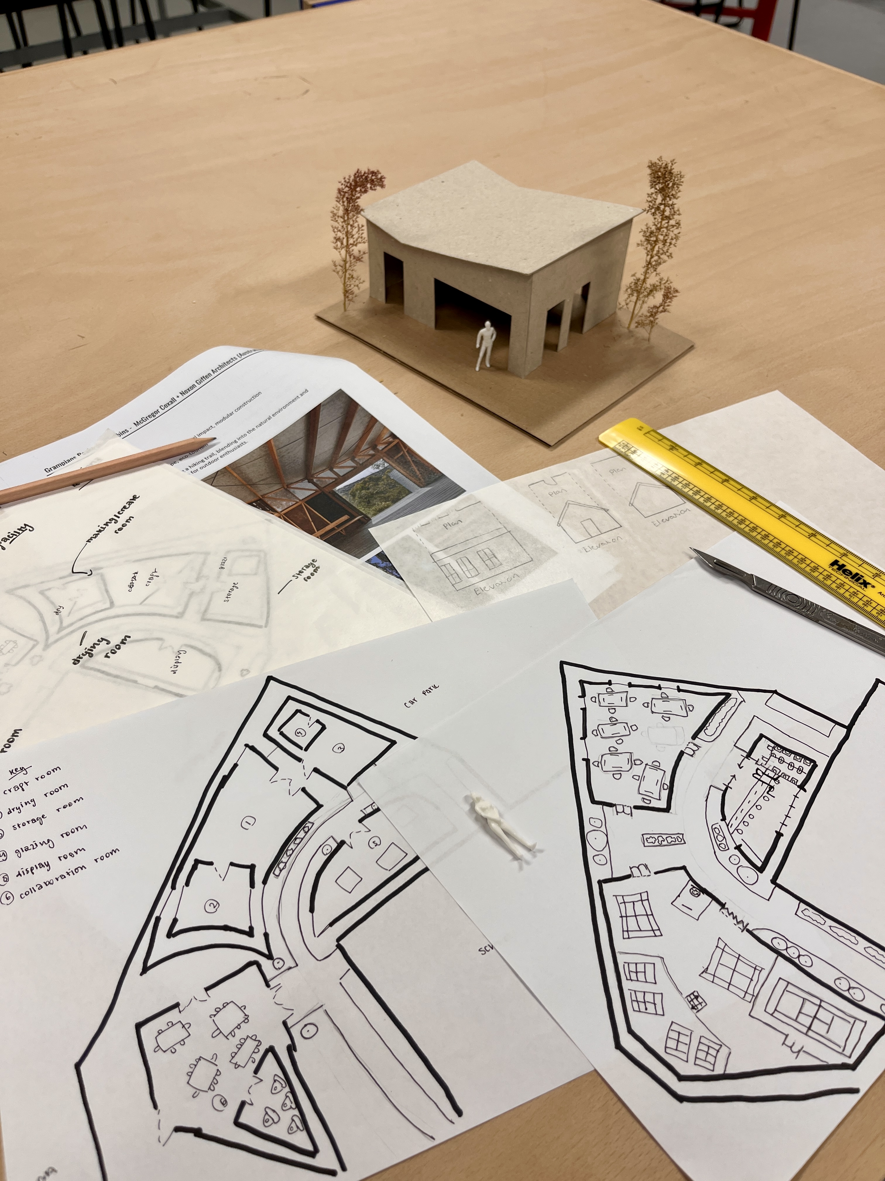 Year 8 have been working on an architecture project, designing an outdoor classroom for Chilmington Green School to support a new subject offering, based around their own interests and hobbies. After conducting a site visit and site analysis, they have created floor plans and presented initial ideas to their peers. This term, they will learn how to draw measured building elevations and construct models, culminating in a final presentation to their class.