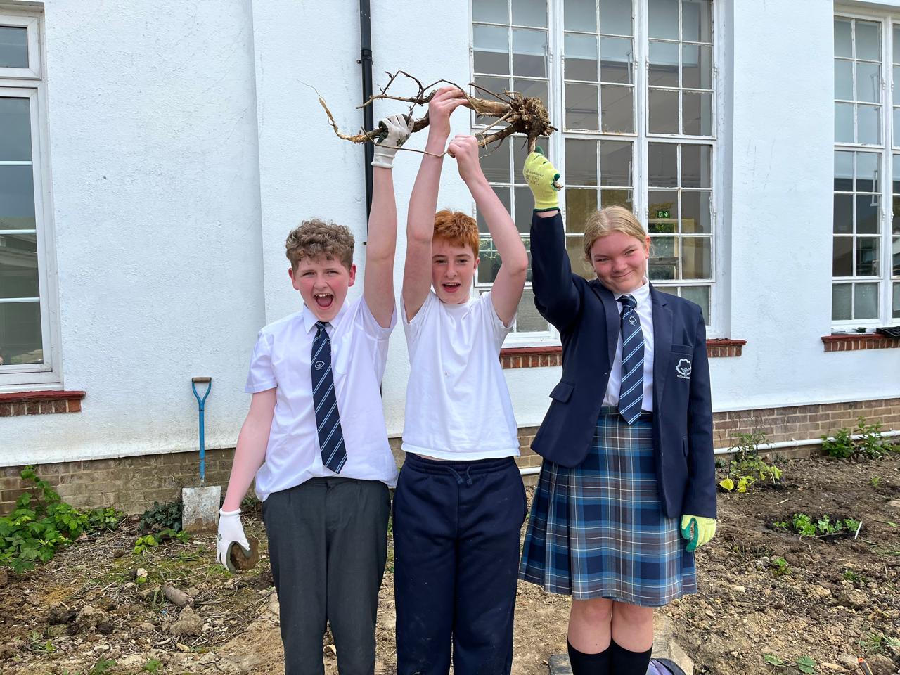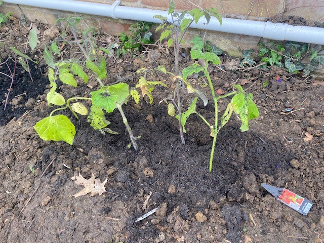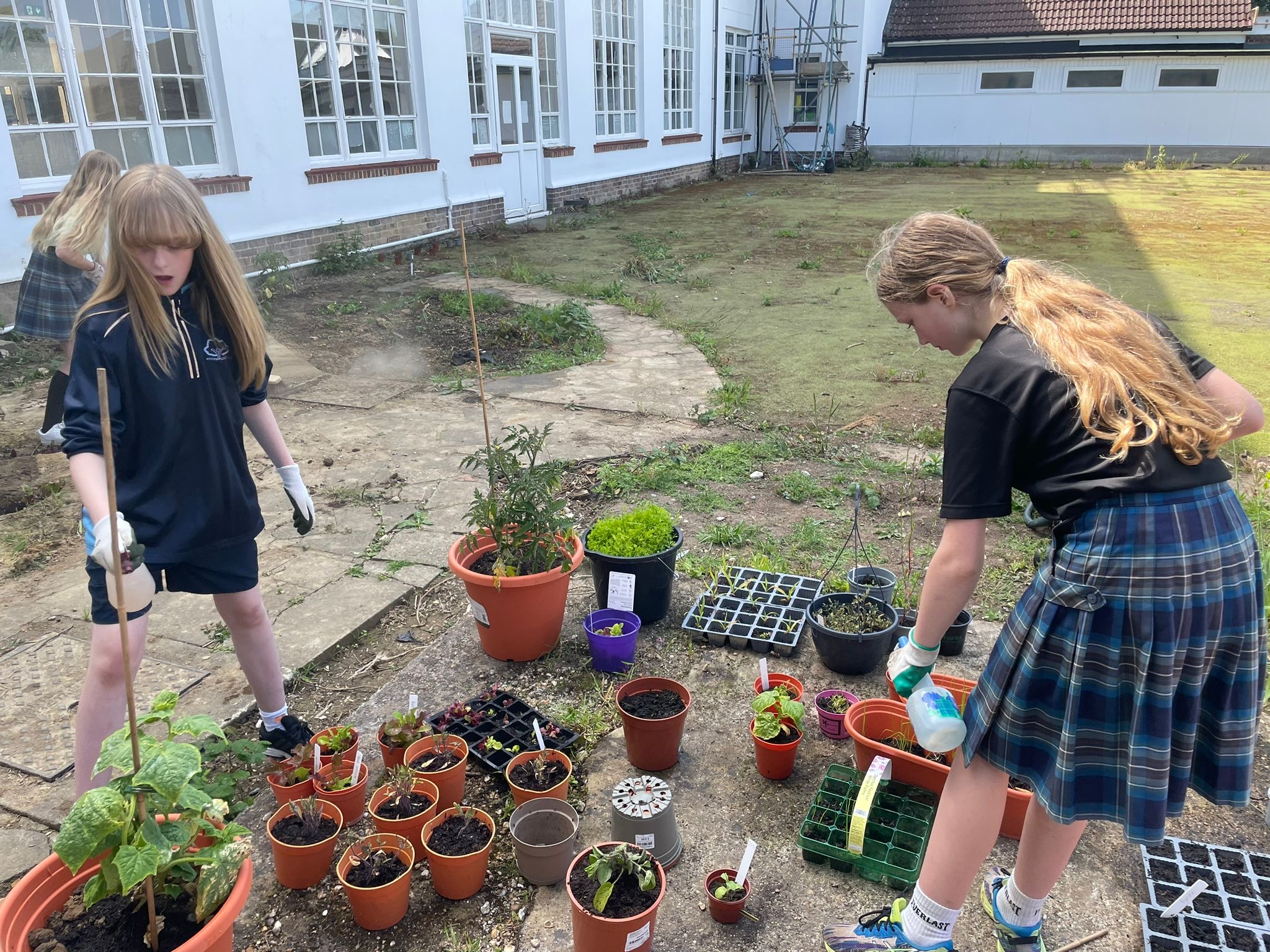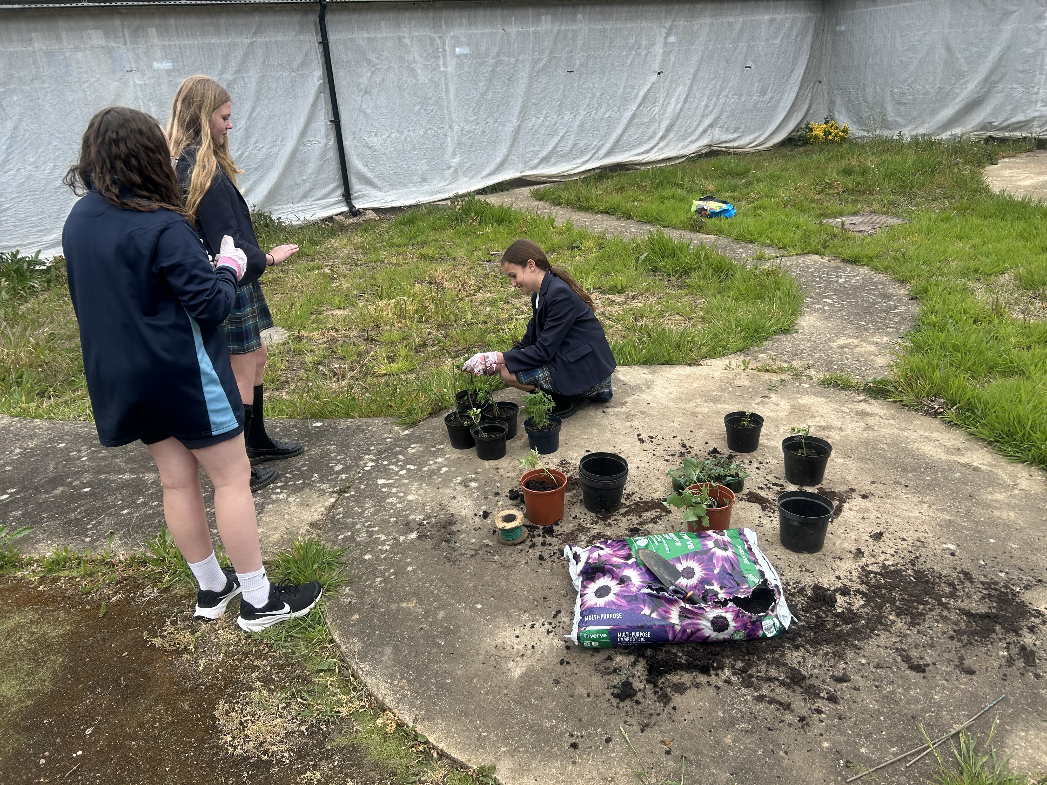 Repotting and stabilising tomato plants by Julia, Evie and Sofia.