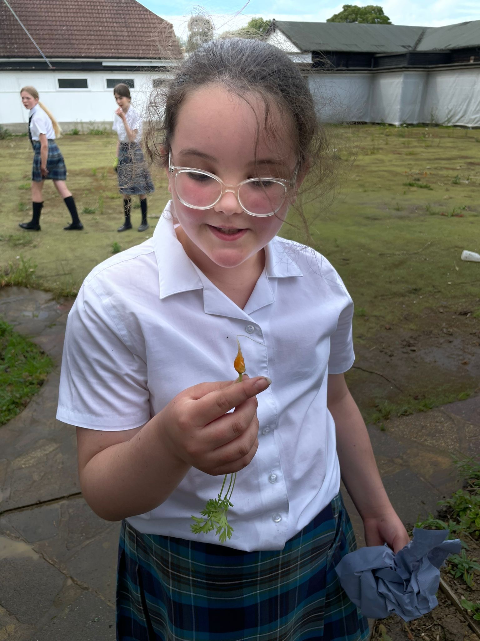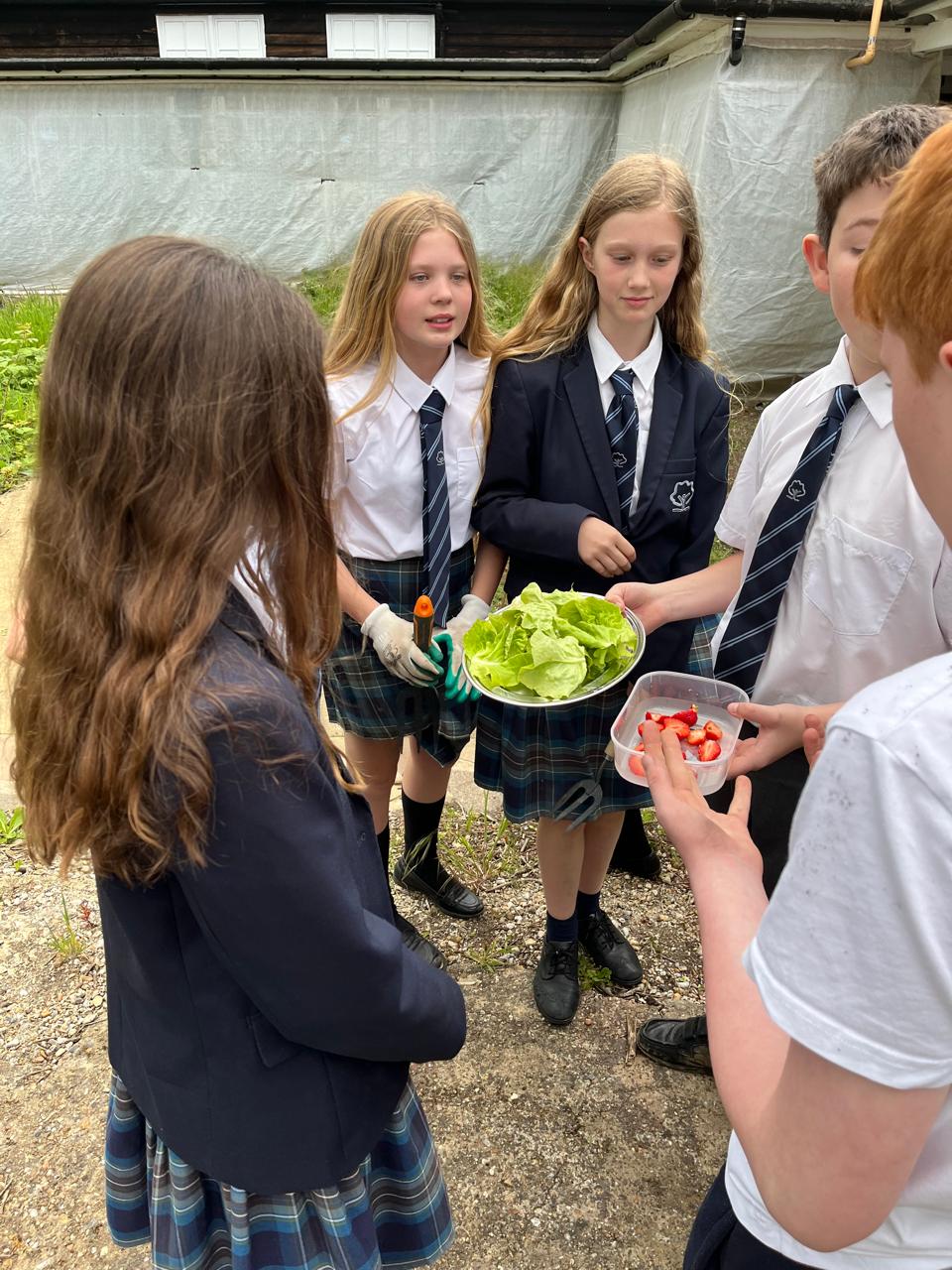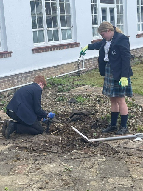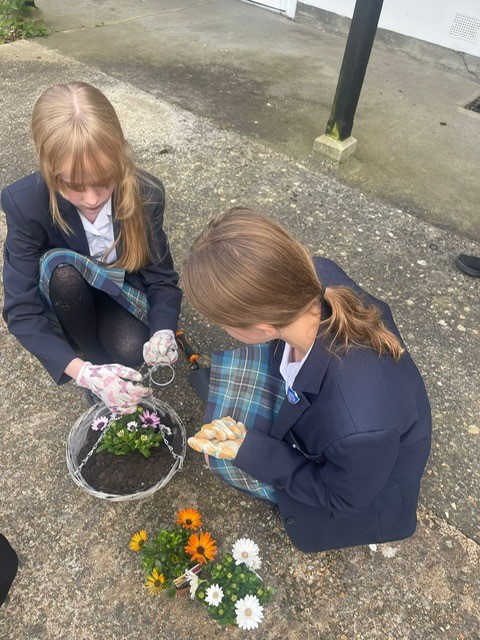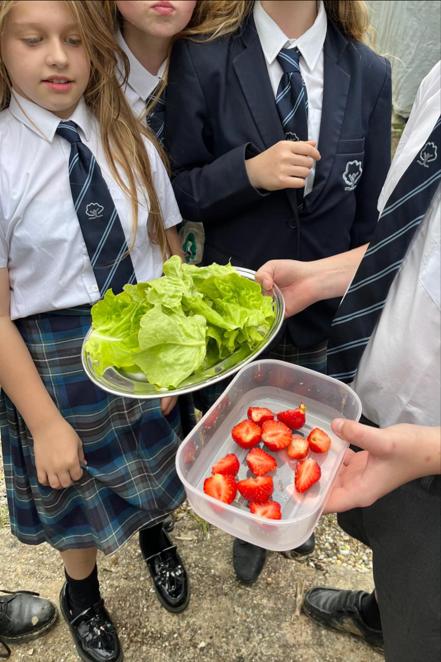 Repotting and stabilising tomato plants by Julia, Evie and Sofia.