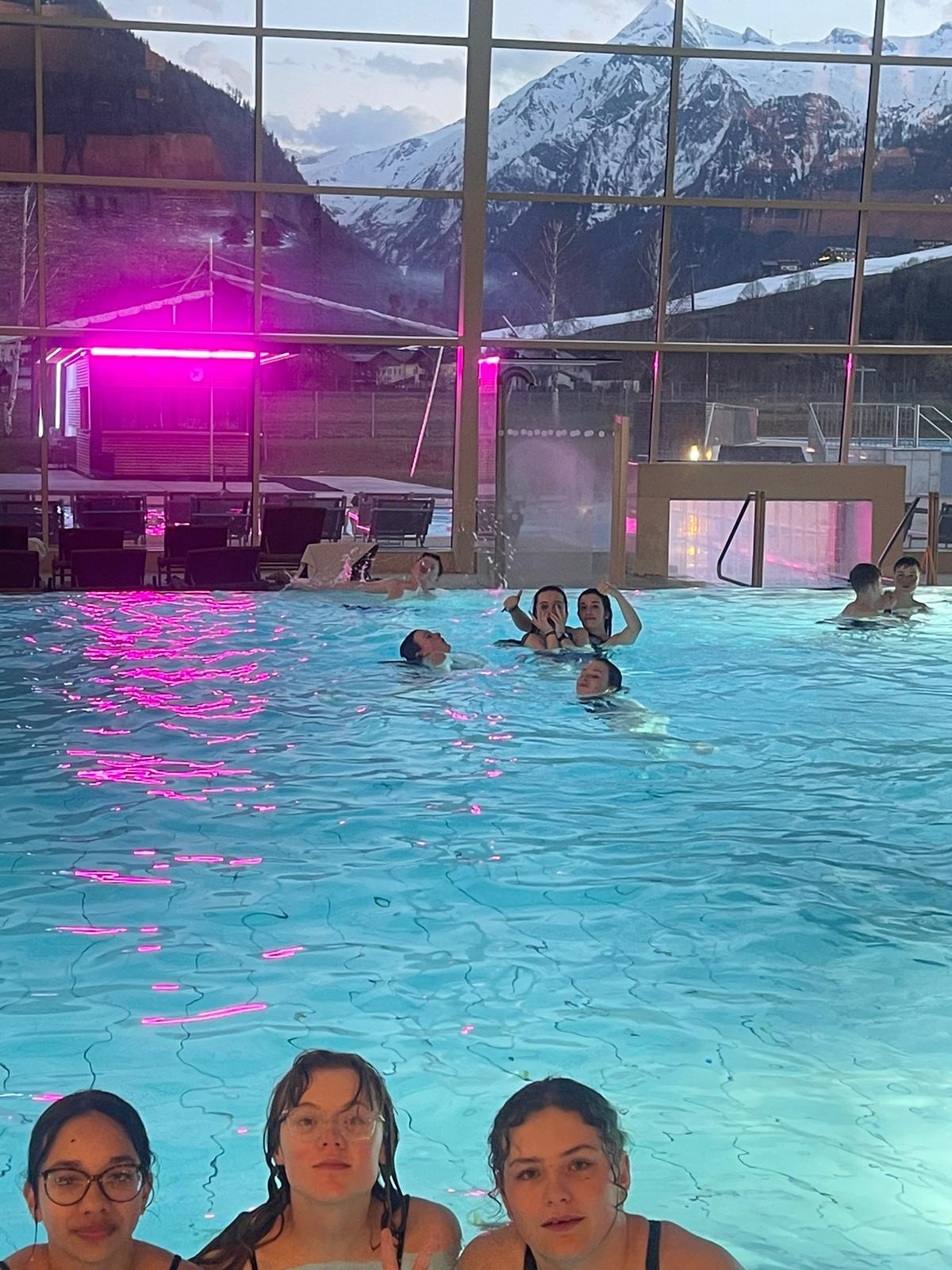 After an action‑packed day on the slopes, students enjoyed some well‑earned relaxation at the stunning Tauern Spa in Austria. Set against the breathtaking backdrop of the Austrian Alps and the Kitzsteinhorn Glacier, the thermal pools offered the perfect way to unwind tired muscles and recharge. This memorable après‑ski experience combined rest, wellness and spectacular scenery, rounding off another fantastic day on the ski trip.